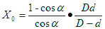 雷蒙磨的最大給料粒度可根據下圖計算。設磨環內直徑為D,磨輥直徑為d,給料粒度為X0,鉗角為α,物料與磨環、磨輥之間的摩擦系數為f。